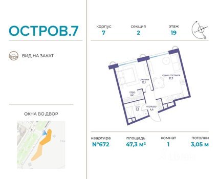 Площадь от 47.3 м2
