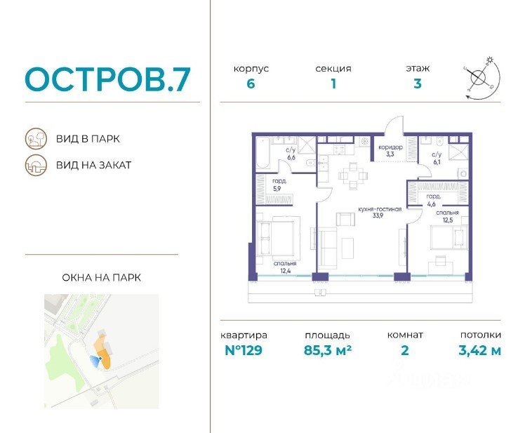 Площадь от 85.3 м2