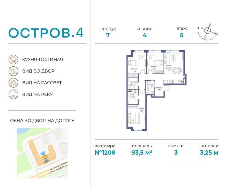 стоимостьЖилой комплекс на западе Москвы, в Мневниковской пойме, обособленный от города рекой и природным парком (650 га). Благодаря природному окружению эта территория имеет лучший экологический рейтинг в столице.